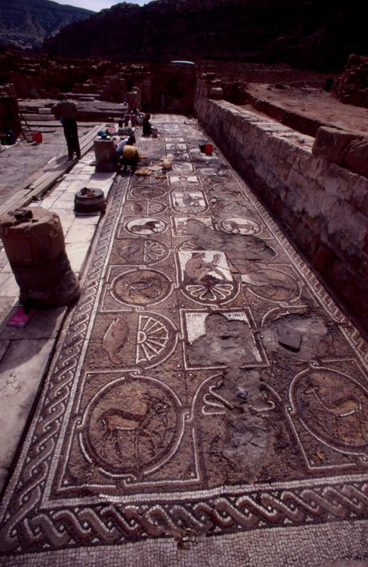 Jordan. Petra, The Petra Church, general view of the mosaic floor from the south aisle