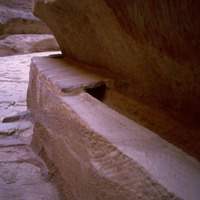 Jordan. Petra, Siq, water pipe carved into the rock with covers