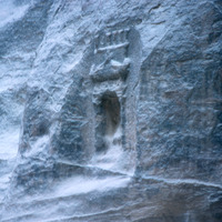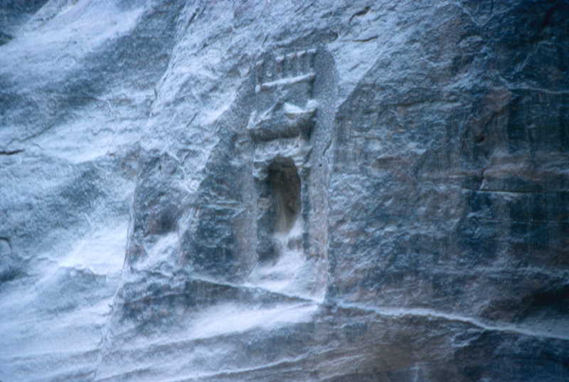 Jordan, Petra, sculpted on the rock wall of the valley of the Siq