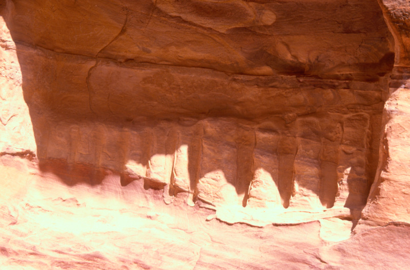 Jordan. Petra, Siq, niche with ten god blocks (betyls)