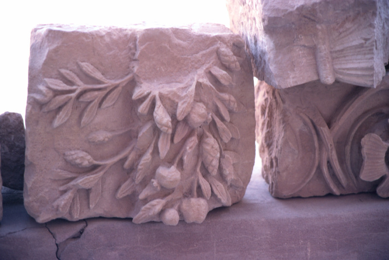 Jordan. Petra, fragments of a frieze with festoons and garlands