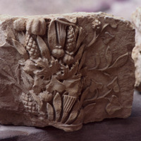 Jordan. Petra, fragments of a frieze with festoons and garlands