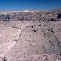 Jordan. Petra, view of Royal Tombs, colonnaded street