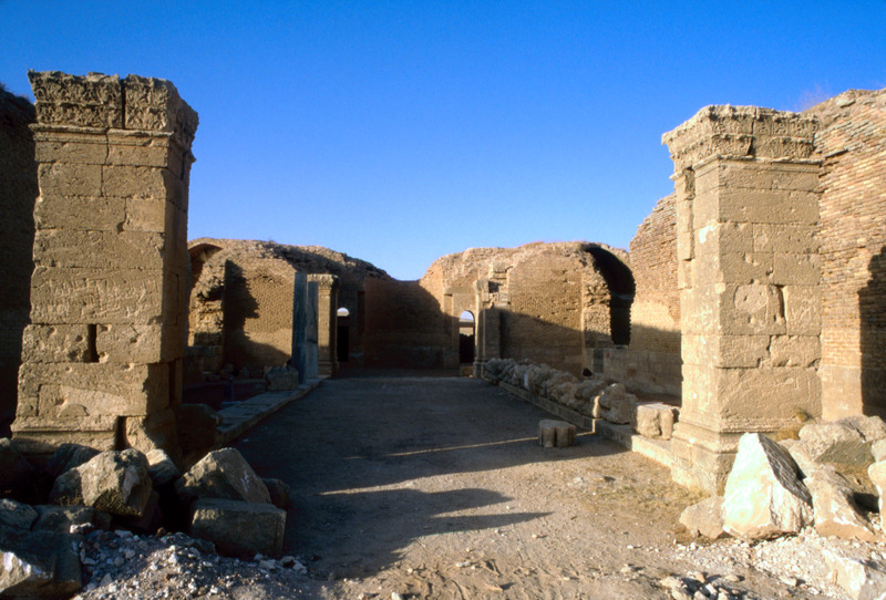 Jordan. Qasr al-Mushatta, view of basilica-like hall facing the throne room