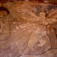Jordan. Qusayr Amra, scene situated above the entrance to the "tepidarium" from the great hall