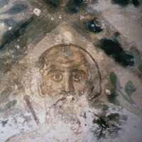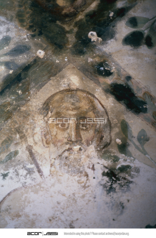 Jordan. Qusayr Amra, old man, from the Three Ages of Life, at the top of the vault of the "tepidarium"