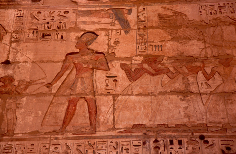 Egypt. Thebes, Madinat Habou, reliefs on Ramses III Temple, 12 century BC