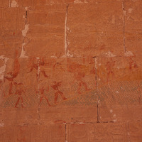 Egypt. Deir al-Bahri, Hatshepsut Temple, painted relief carving