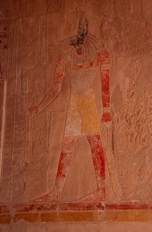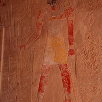 Egypt. Deir al-Bahri, Hatshepsut Temple, painted relief carving