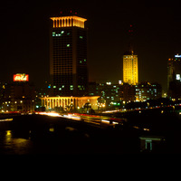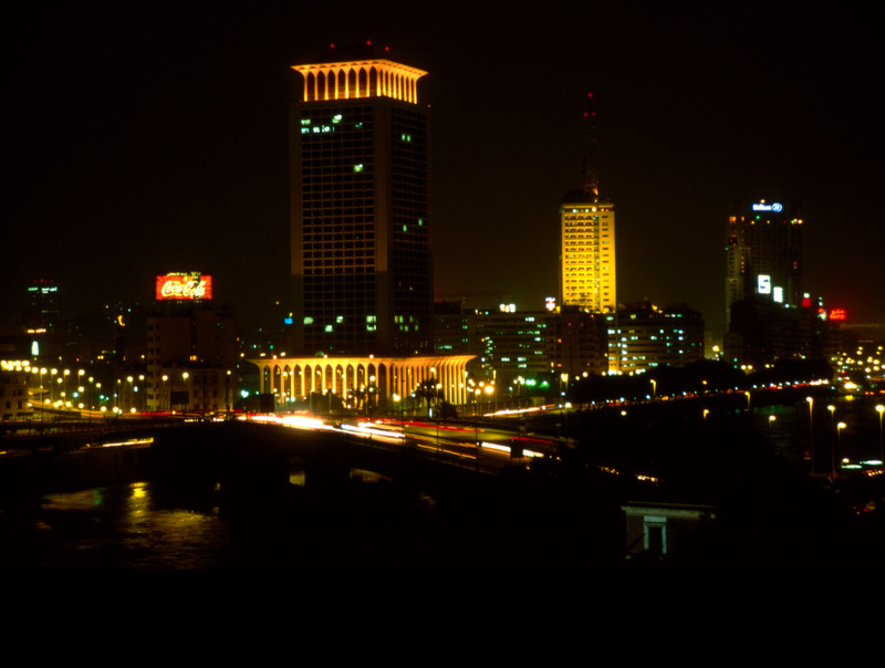 Egypt. Cairo, evening view over Nile and 26 July bridge