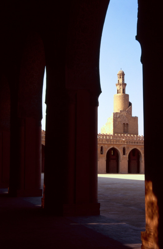 Egypt. Cairo, Ibn Tulun Mosque, ninth century minaret through arch