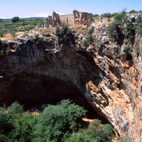 Turkey. Kanlidivane (Canytelis), chasm and Papylos church on north side