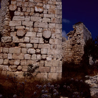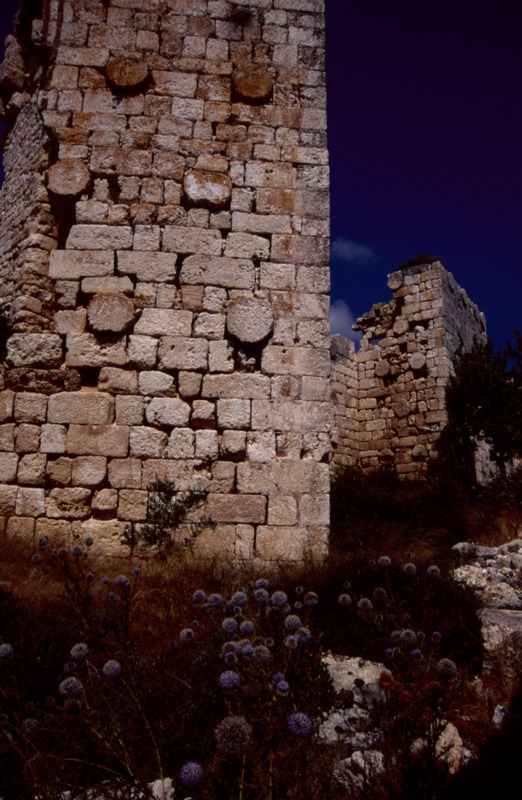 Turkey. Corycus, wall of land castle and re-used Roman columns