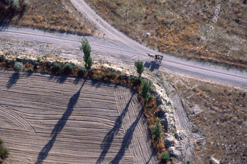 Turkey. Cappadocia, horse and cart in early morning (Aerial)