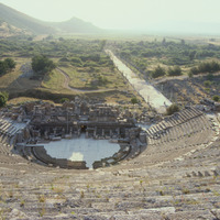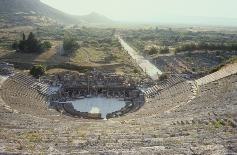 Turkey. Ephesus, theater, view from top to Arcadian way and harbour
