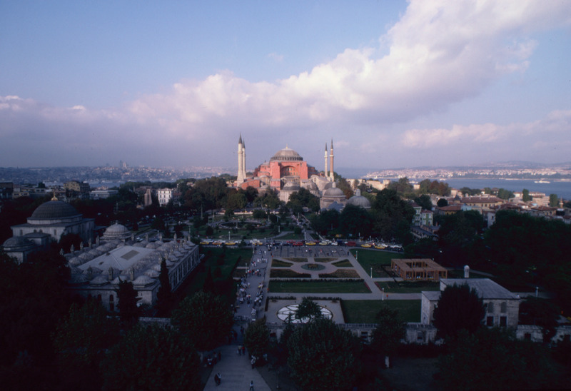 Turkey. Istanbul, Haghia Sophia, sixth century from minaret of Sultan Ahmed