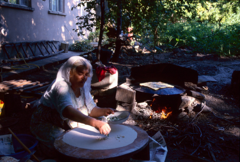 Turkey. Agin, women making börek in garden
