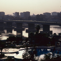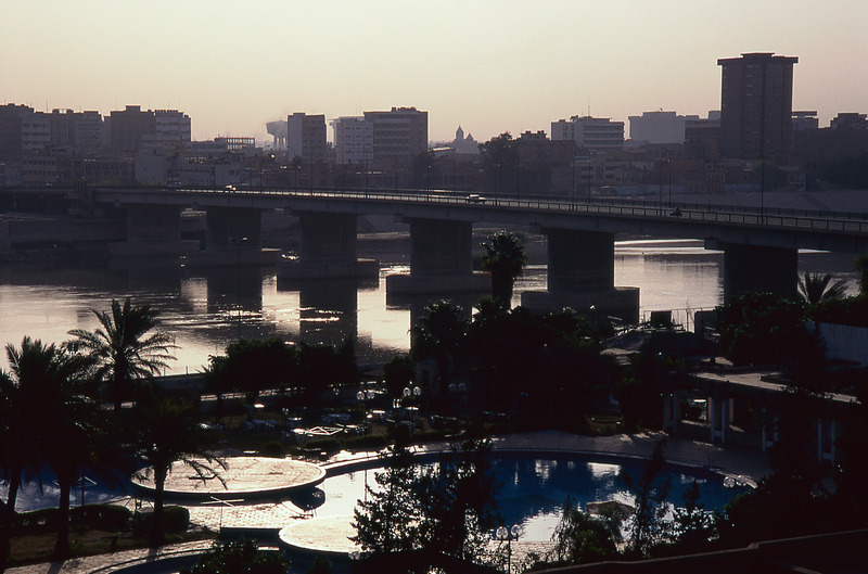 Iraq. Baghdad, view over river and bridge from Mansour Melia Hotel