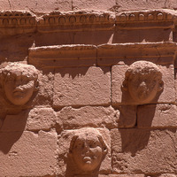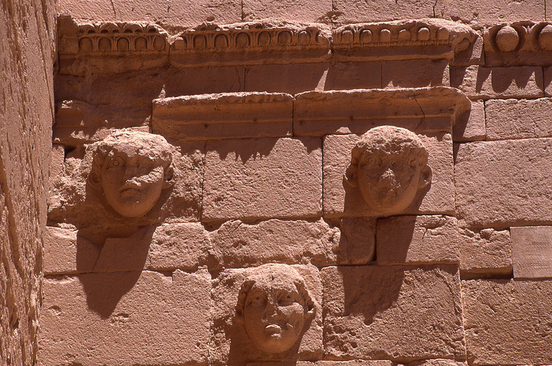 Iraq. Hatra, main iwan of Marn, carved eagle and three heads