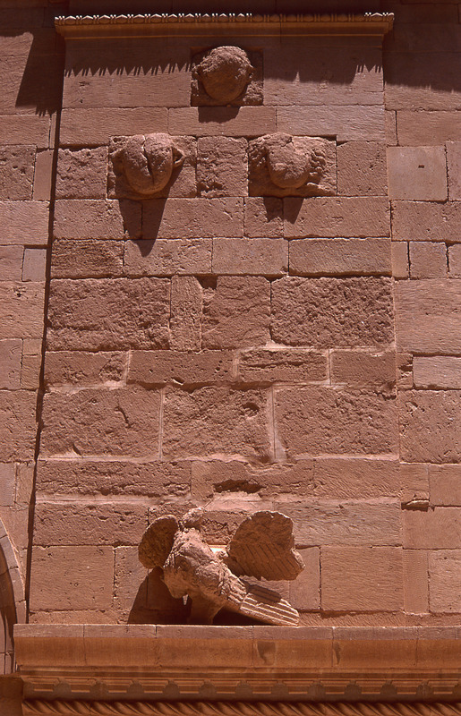 Iraq. Hatra, main iwan of Marn, carved eagle and three heads