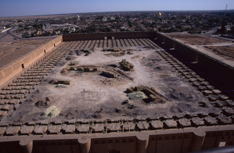 Iraq. Samarra, view of Great Mosque renovation from spiral minaret