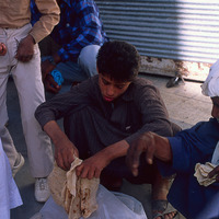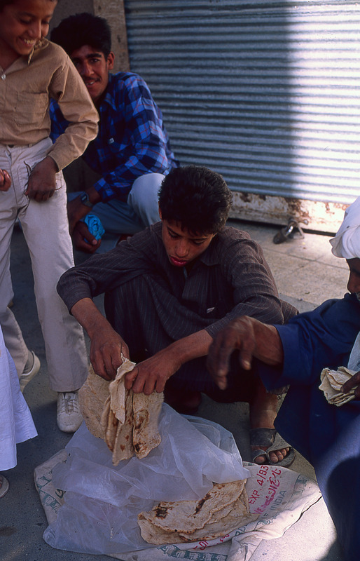 Iraq. Baghdad, selling bread in street market