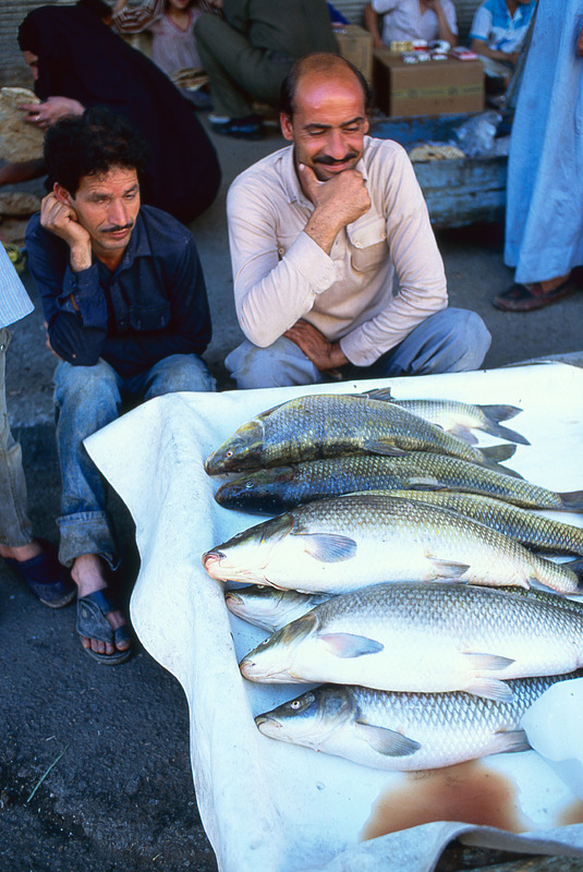 Iraq. Baghdad, fish stall in street market