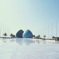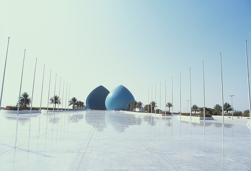 Iraq. Baghdad, Martyr's monument built 83, designed by Ismail Fatah Turk (1/2 facing sunrise/birth, 1/2 facing sunset/martyrdom