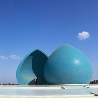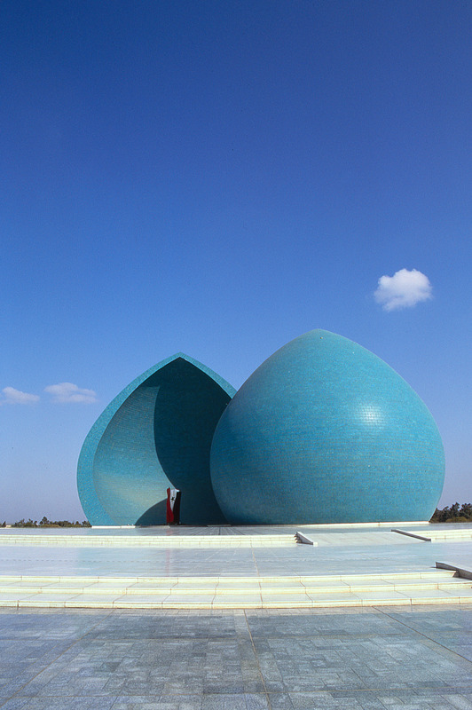 Iraq. Baghdad, Martyr's monument built 83, designed by Ismail Fatah Turk (1/2 facing sunrise/birth, 1/2 facing sunset/martyrdom