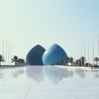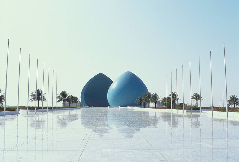 Iraq. Baghdad, Martyr's monument built 83, designed by Ismail Fatah Turk (1/2 facing sunrise/birth, 1/2 facing sunset/martyrdom