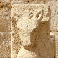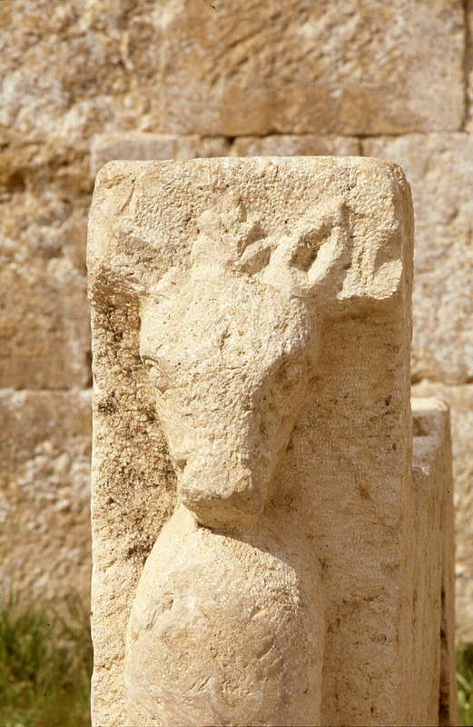 Jordan. Jerash, Macellum (Agora), carved animal head from stand