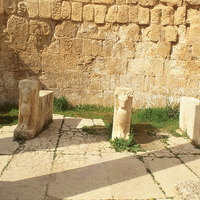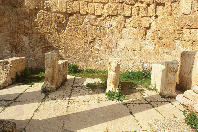 Jordan. Jerash, Macellum (Agora), stands with animals reliefs