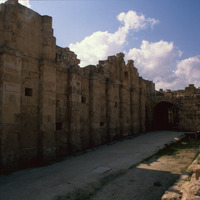 Jordan. Jerash, city wall and Hadrian's Arch (South Gate)