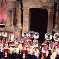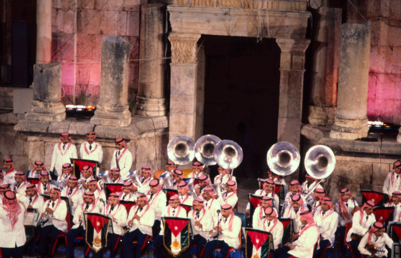 Jordan. Jerash, Festival, Jordan Army band in South Theater