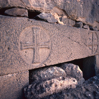 Jordan. Mafraq, Umm al-Jimal, Christian cross on Byzantine Church