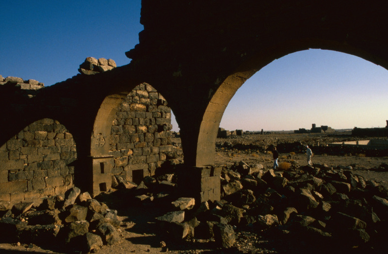 Jordan. Mafraq, Umm al-Jimal, barracks through west church arch