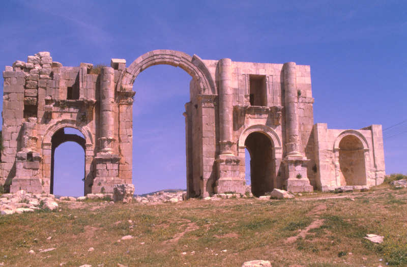 Jordan. Jerash, Arch of Hadrian (South Gate) قوس هادريان