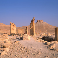 Syria. Palmyra, colonnaded street, Arab Castle and funerary temple