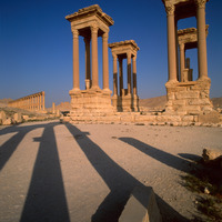Syria. Palmyra, Tetrapylon in oval plaza in colonnaded street