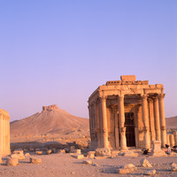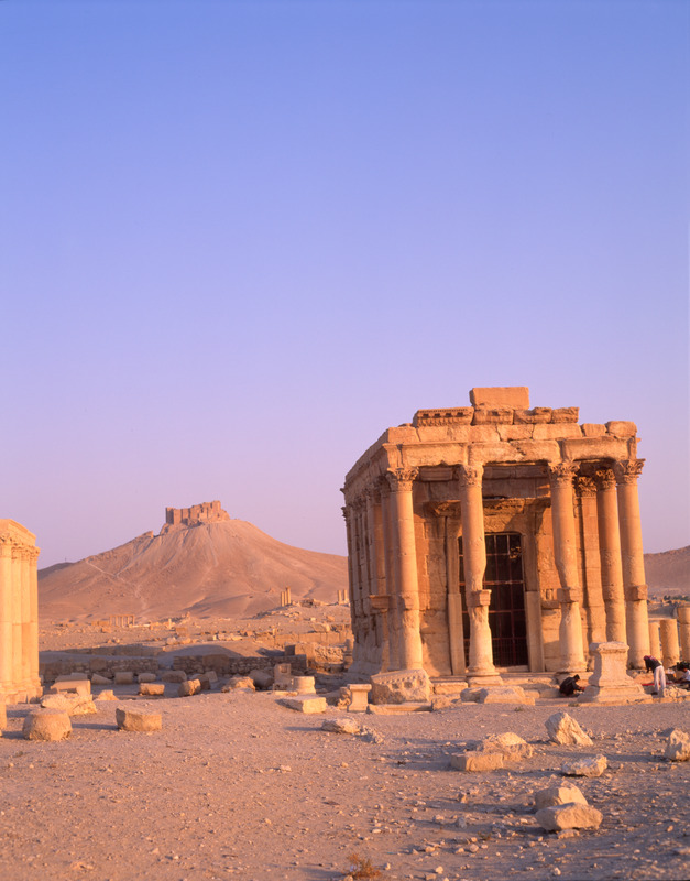 Syria. Palmyra, Temple of Ba'alshamin, Qasr ibn Maan in background