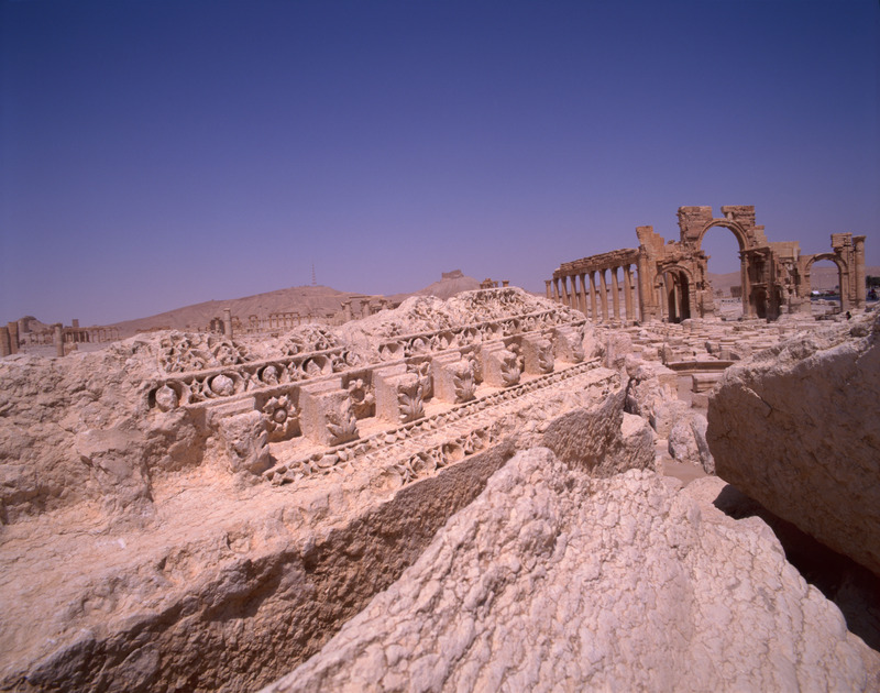 Syria. Palmyra, carving and monumental arch in background