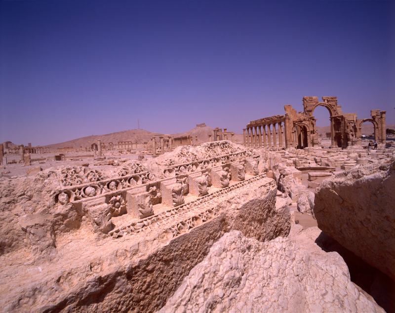 Syria. Palmyra, carving and monumental arch in background