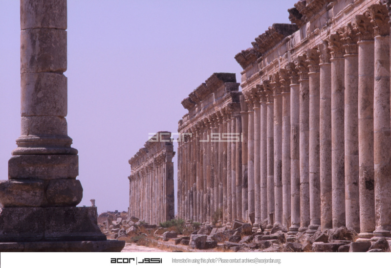 Syria. Apamea, colonnaded street, votive column in foreground