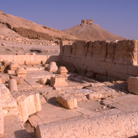 Syria. Palmyra, Temple of Allat and Qala'at ibn Maan in background