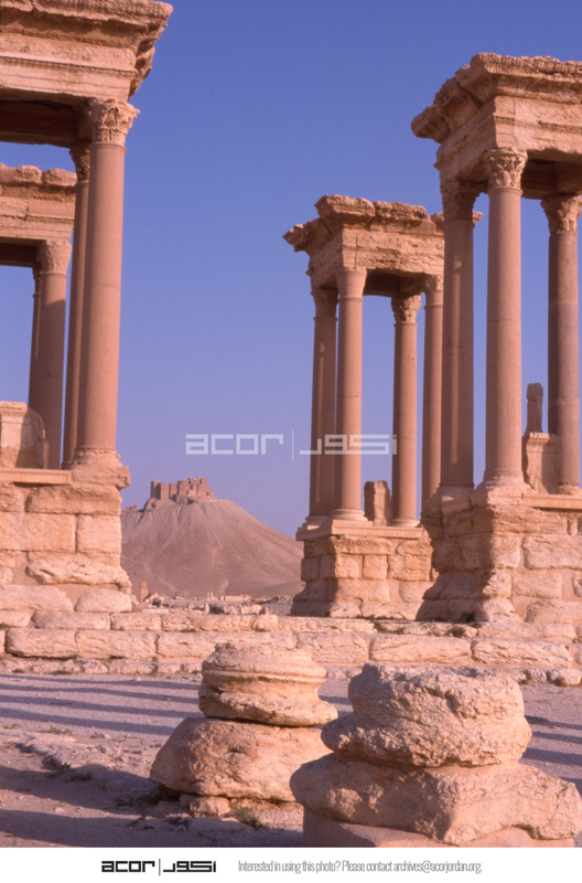 Syria. Palmyra, tetrapylon and Qala'at ibn Maan in background