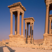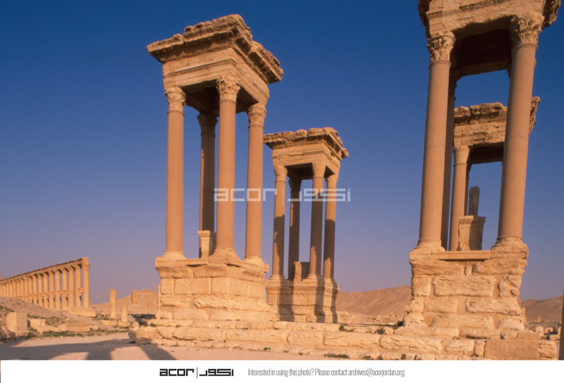 Syria. Palmyra, tetrapylon in oval plaza in colonnaded street