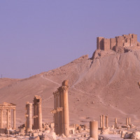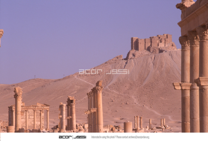 Syria. Palmyra, colonnaded street, Arab castle and funerary temple