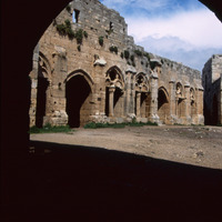 Syria. Krak des Chevaliers, 12th century Crusader castle, lower court from south