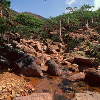 Yemen. Socotra, bottle trees (Adenium socotranum)