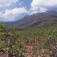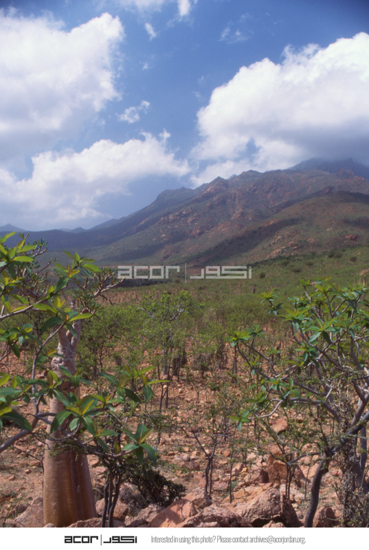 Yemen. Socotra, bottle trees (Adenium socotranum)